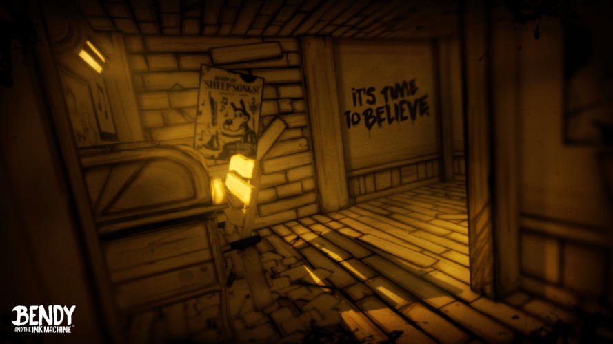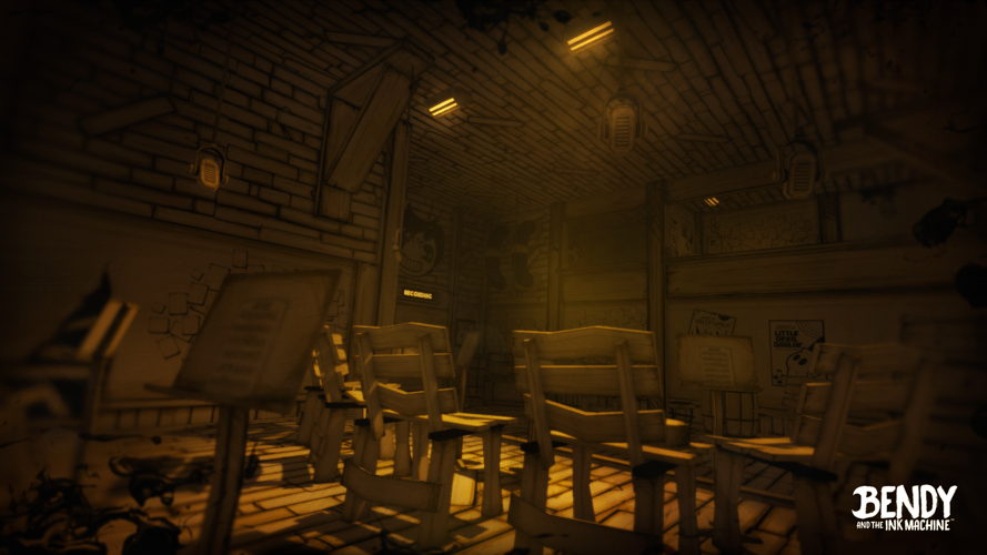 Bendy is a mischievous Devil, with an infallible grin. And Bendy likes to play games with you. As you progress through the first chapter, the above image will feel like it is positioned in every possible position throughout the offices to keep an ever watchful eye on you. Cutouts will appear suddenly and inexplicably to catch you off guard and later on certain cutouts - once destroyed - will reform as if untouched the moment you take your eyes off them.
